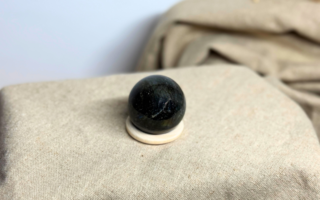 Labradorit-Kugel (Ø 4 cm) mit schimmernden Reflexen. Symbol für Intuition, Schutz & Klarheit. Ideal für Meditation & stille Momente.