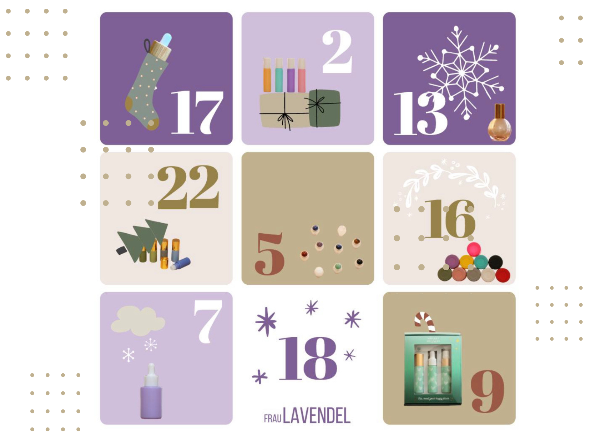 Die Weihnachtszeit steht vor der Tür und wir wollen Dir diese schöne Zeit mit unserem FrauLAVENDEL-Adventskalender 2025 noch weiter versüßen! Der Kalender ist bis zum 24. November erhältlich und beinhaltet 24 tolle Geschenke mit Produkten aus unserem aktuellen Sortiment, liebevoll für Dich verpackt.