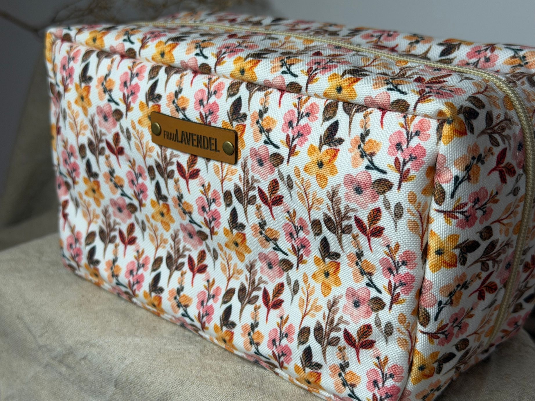 Die Kultur-Pouch „Autumn Flowers“ ist genau dafür gemacht. Sie schenkt Raum für das, was Dir wichtig ist: Kosmetik, Pflegeprodukte, Roll-Ons, kleine Rituale – alles findet seinen Platz.
