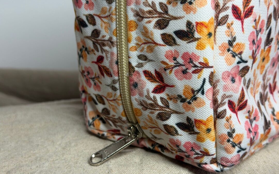 Große Kultur-Pouch by FrauLAVENDEL mit Fächern & Reißverschluss – ideal für Kosmetik, Roll-Ons & Reisen. Handgefertigt im Design „Autumn Flowers“.